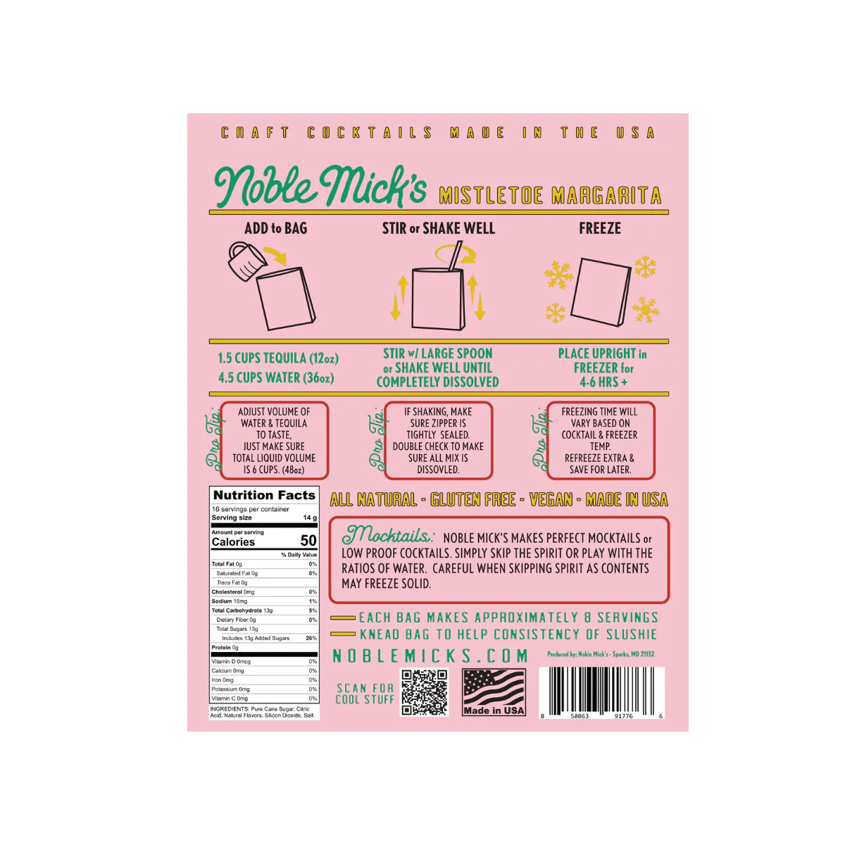 Frozen Cocktails don't get easier than this! Each bag makes 8 servings. No blenders ever! Simply add 1.5 cups of tequila and 4.5 cups of water (total 6 cups of liquid), shake or stir and throw in the freezer. Then serve right from the bag.