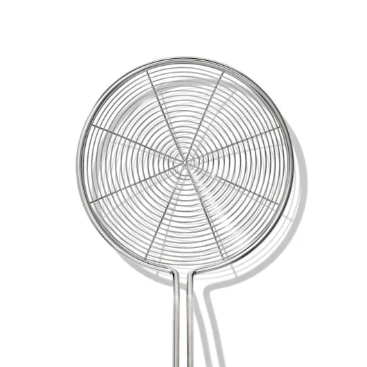 Whether you're boiling, blanching or frying the OXO Good Grips Scoop & Strain Skimmer is the perfect tool to remove pasta, vegetables and pan or deep-fried foods while leaving all liquid behind. Featuring a wire coil design that ensures even the most delicate of foods won’t be damaged, the Skimmer’s deep, open basket is constructed for safe and efficient straining. An upgraded longer, angled handle and soft, non-slip grip enhance the Skimmer’s safety by keeping hands far away from hot oil or water.