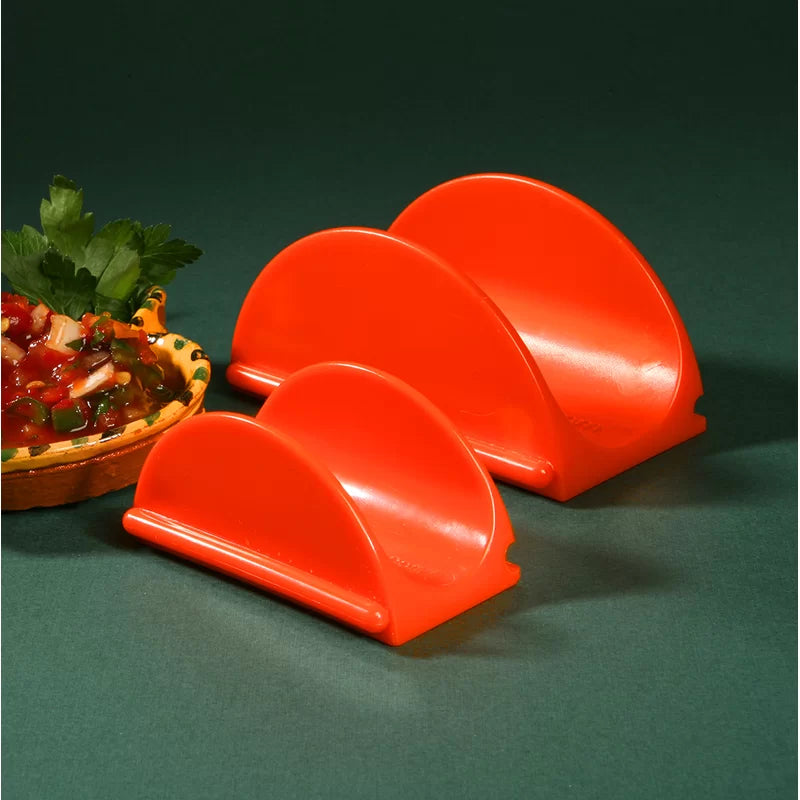 Our TacoStandUp 'El Grande' large taco holder -- pictured here alongside TacoStandUp 'Original' for size comparison-- is perfect for your soft shell, flour tortilla tacos. It works great with your over-stuffed, supersized hard taco shells. TacoStandup also interlocks with TacoStandUp Original to give you even more serving options! Pick up a set of 4 right now!