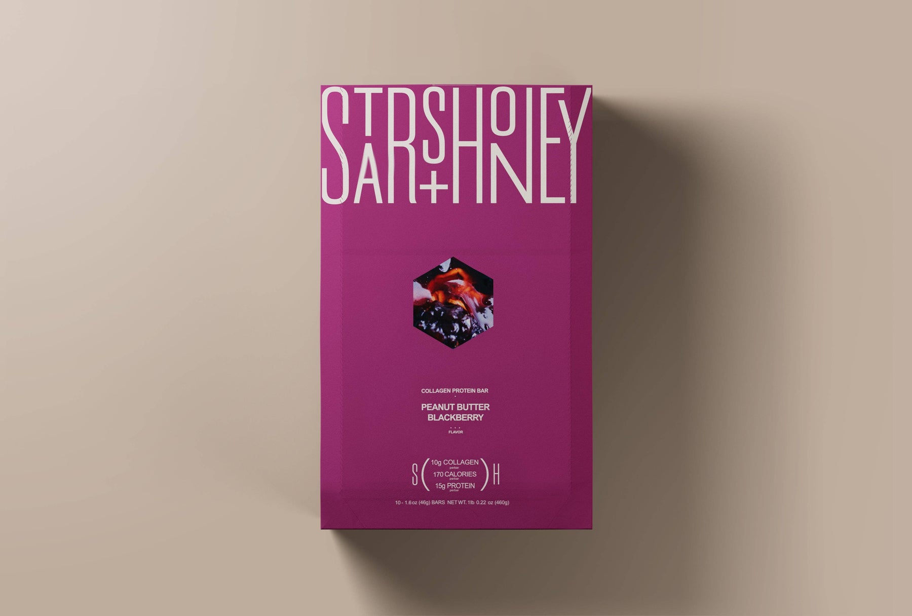 The Collagen Protein Bar. An elevated take on the classic children’s sandwich – PB&J. Real blackberry pieces with savory roasted peanuts.